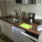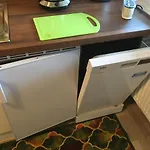 Ett kök är utrustat med mikrovågsugn, diskmaskin och kylskåp till gästernas förfogande.